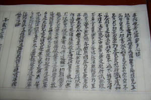 この場合、頭に「為」と書いて、 たとえば故人の冥福を祈り、報恩・祈願のため等の願文を記します。 - 氏名を記し、末尾に「謹写」と印します。雅号は用いないこと。