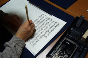 - 書写が終れば、『普回向』を唱え写経を終ります。
